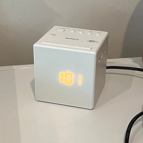 Sony herätyskello, jossa on sisäänrakennettu radio ja projektori kellonajan heijastamista varten. Kuutiomainen malli, jossa digitaalinen kellonäyttö etupaneelissa ja painikkeet yläosassa herätysten, radion ja muiden toimintojen säätöön. Sopii yöpöydälle ajan seuraamiseen ja herätyskelloksi. Väri musta. Ovh 77€