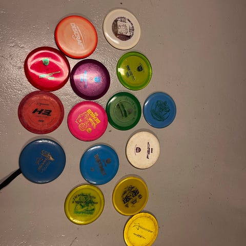Discmania frisbeegolfreppu ja 18 kiekkoa Reppu on selkämallinen Kiekkoja eri merkkisiä ja mallisia eri tilanteisiin Kokonaisuus sisältää repun sekä kuvissa näkyvät kiekot osa enempi kulunu ja osa vähemmän mutta täysin pelikuntoisia ja lentävät hyvin.