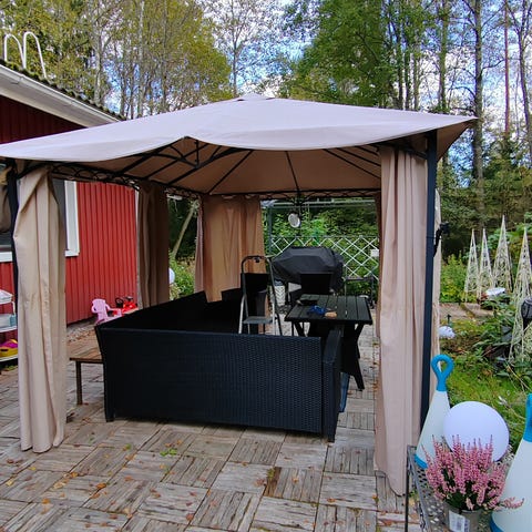 Myydään uusi paketissa oleva Sotkan Parma paviljonki, koko 3 x 3m. Harmaa päällykangas. Tarkempien mittauksien jälkeen totesimme, ettei paviljonki sittenkään mahdu suunniteltuun paikkaan omassa pihassa, siksi myydään eteenpäin. Nouto Kaukajärveltä.