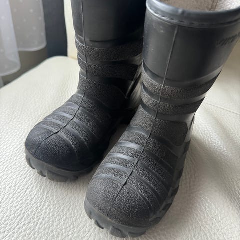 Yhdellä lapsella käytössä olleet lämpösaappaat, pieneksi sittemmin jääneet. Vuori toki painunut jonkin verran, mutta ehjä.