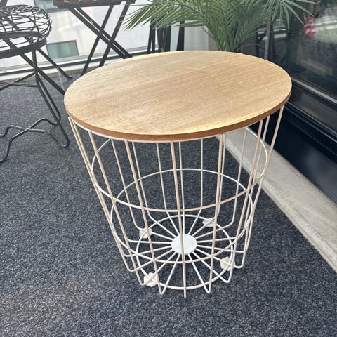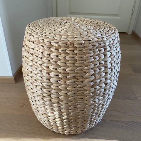 Puinen rahi, jossa lieriön muotoinen runko pystysuuntaisista puulistoista. Pinta on ruskeansävyinen ja kuluneen näköinen, mikä antaa rustiikkisen ilmeen. Soveltuu istuimeksi tai pienenä sivupöytänä esimerkiksi olohuoneeseen tai eteiseen. Sisällä säilytystilaa.