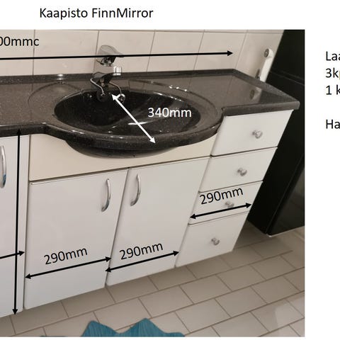 Korkeakiiltoiset uudet kylpyhuoneen kaapit,esim pyykkikaappi. 2kpl