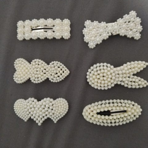 Hauen hampaiset helmiäisklipsit hiuksiin
