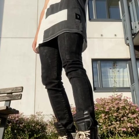 Vähän käytetty. Tässä hupparissa hihojen sauma on jätetty auki ja sen on tarkoitus purkautua kuten oikealle hihalle on käynyt. Muutoin kunto on moitteeton.