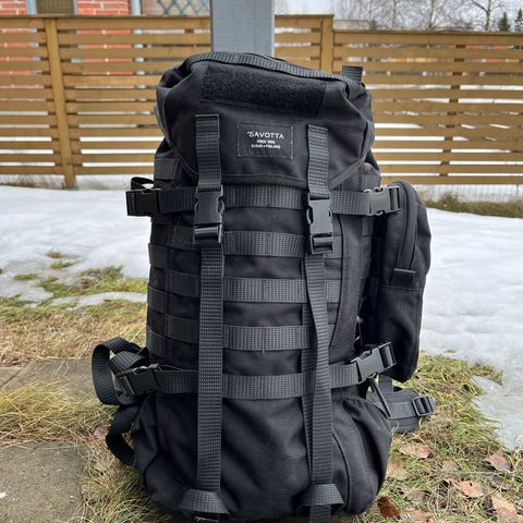 Savotta Jääkäri S reppu musta. Kompaktin kokoinen taktinen reppu, jossa säädettävät olkahihnat ja rintaremmi. Etupuolella kompressiohihnat ja kiinnityspisteitä lisävarusteille. Valmistettu kestävästä kankaasta, soveltuu arkeen, retkeilyyn ja muuhun ulkoiluun.