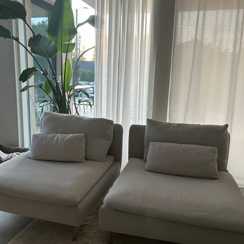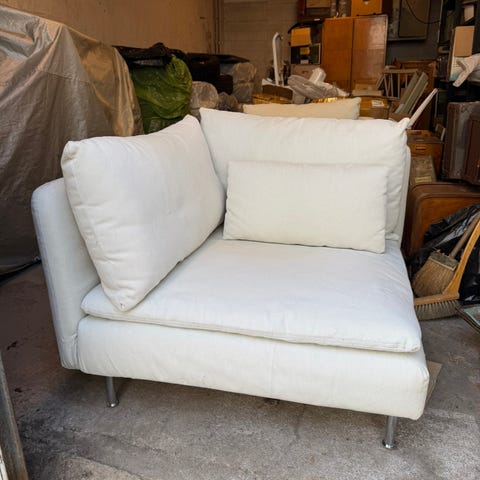 Myydään Ikean hyväkuntoinen Söderhamn sohvan kulmapala, värissä Samsta harmaa. Kangas on elävä, tummanharmaa. Mukaan tulee siis kaksi selkänoja palaa, yksi iso tyyny, pienen tyynynpäällinen sekä kuvassa näkyvät hopeiset jalat. Kulmapala on valmiiksi purettu osiin. Ollut meillä viimeisen reilun vuoden käyttämättä työhuoneessa purettuna muuton jälkeen.