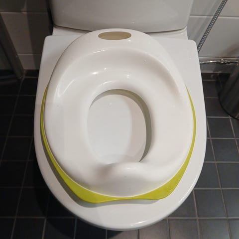 Keeeper Ryhmä hau lasten wc-supistaja on valkoinen, ja siinä on punaiset liukueste- ja reunayksityiskohdat. Supistaja asetetaan tavallisen wc-istuimen päälle, jolloin istuinaukko pienenee lapselle sopivaksi. Tuote on muovia ja tarkoitettu helpottamaan pienten lasten wc-käyntiä kotona tai muualla, missä on tavallinen wc-istuin.
