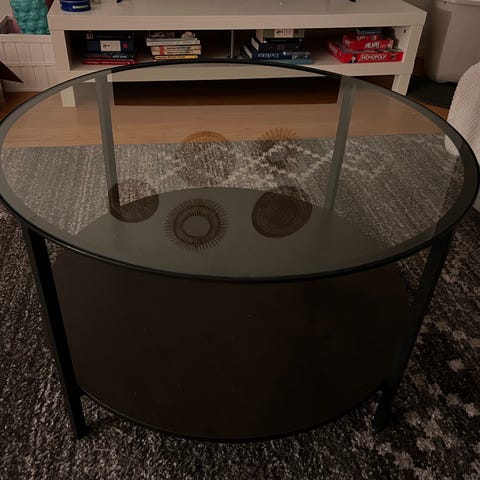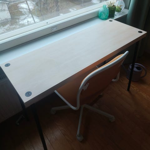 Hyväkuntoinen pöytä, ihan pientä jälkeä, mustanruskea