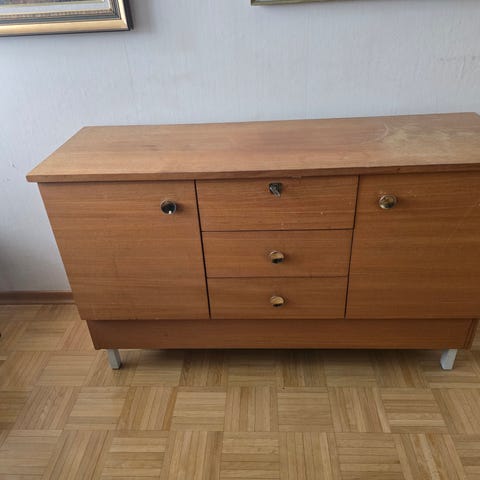 Kunnostettu 1960-luvun teak-senkki laatikostolla. Uniikki senkki on aikanaan mittatilaustyönä teetetty huonekalu, joten vastaavaa ei löydy. Laatikot liikkuvat hyvin ja ovat sisältä siistit. Ovissa on toimivat lukot, joihin löytyy avaimet.