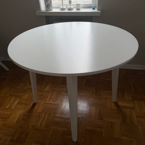 Jyskin valkoinen pyöreä ruokapöytä