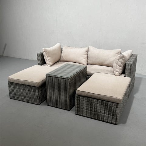 Asko Classic Garden ruokailuryhmä, joka sisältää pöydän ja kaksi nojatuolia. Pöydässä on lasikansi ja tuolit ovat mustaa polyrottinki punosta. Valmistaja on Asko. Kätevä setti, jossa nojatuolin selkänojan saa taitettua alas ja istuin menee pöydän alle piiloon ja pieneen tilaan.