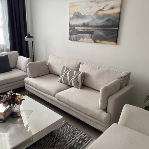 Myydään sohvaryhmä, 3 sohvaa, 2,5-istuttava ja kaksi 3-istuttavaa. Ostettu MASKUsta 29. joulukuuta 2024, eli noin vuoden käytön jälkeen. Ne ovat hyvässä kunnossa ilman erityisiä vikoja. Myyn, koska vaihdoin ne muihin sohviin.