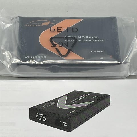 Atlona AT-HD550 on HDMI-skaalain, joka tukee ylös- ja alasskaalausta. Laite on suunniteltu parantamaan kuvanlaatua eri resoluutioilla. Mukana tulee alkuperäinen pakkaus ja käyttöohjeet.