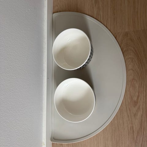 Bibi&Bim -merkkinen tarjotintyyppinen alusta koiran tai kissan ruokakuppien alustaksi. Pienoisia käytönjälkiä luonnollisesti, mutta siisti ja ehjä. Mitat 42cmx32cm
