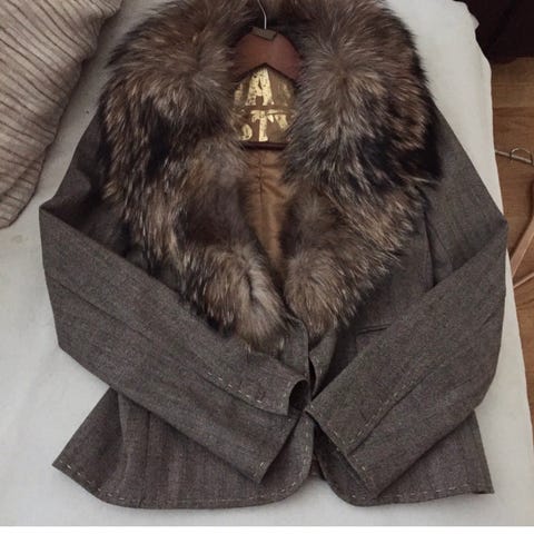 Plush / tweed-style jacket from H&M, beige color, in good used condition.