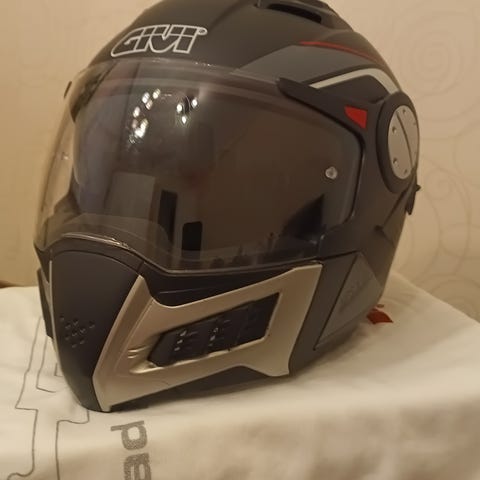 Lähes käyttämätön Givi merkkinen avokypärä. Koko S-56. E- merkintä, mutta valmistusvuodesta ei löytynyt merkintää, joten myydään koristeeksi.