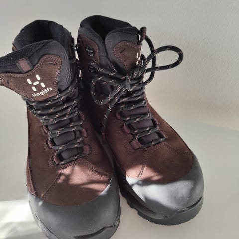 Haglöfs Eclipse GT vaelluskengät, koko 43 1/3, 27,6cm. Ruskeat, nilkkapituiset nauhalliset kengät, joissa gore-tex kalvo, kumivahvistetut kärjet ja reilusti kuvioitu pitävä pohja. Kengät soveltuvat vaellukseen, retkeilyyn ja yleiseen ulkoilukäyttöön. Koiratalous.