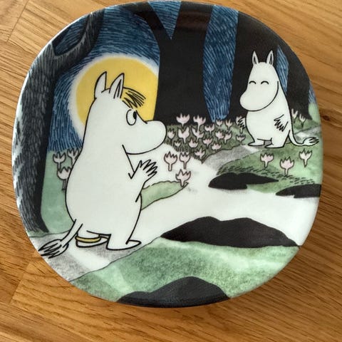 Myynnissä Moomin Arabian minilautanen Moominvalley Park Japan. Tuote on saatavilla vain Japanista. Pakkaus sisältää kaksi minilautasta. Tuote on uusi. Tarra on paikoillaan. Yhden lautasen halkaisija on 10,5 cm.