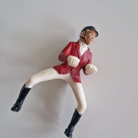 Todella siisti kunto, selässä valkonen piste. Sekä vaaleissa housuissa pari jälkeä. Muutama naarmu. Ei ole schleich, vaikka onkin saman näköinen/kokoinen! Rambon tallissa tämän näköinen kulkee nimellä Ella.