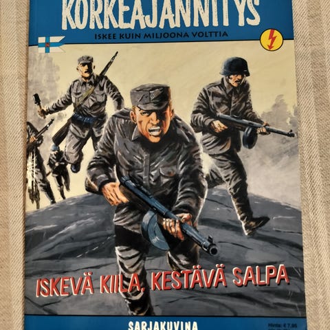 Korkeajännitys -sarjan pokkarikirjoja, useita eri numeroita ja nimiä. Kirjoissa on pehmeäkantinen pokkariformaatti ja kannet, joissa on sotateemaisia kuvituksia, kuten lentokoneita, panssarivaunuja ja jalkaväkeä. Sopii esimerkiksi kokoelmaksi Korkeajännitys-sarjan lukijoille tai sarjakirjojen harrastajille. Myydään kuvissa näkyvä erä yhtenä. Ainakin 40kpl