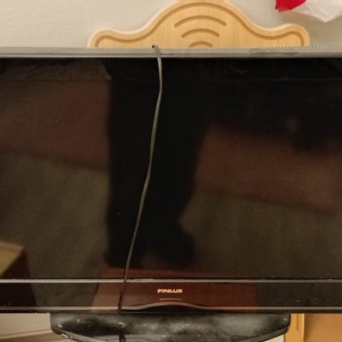 Vanha 32 tuuman Finlux televisio. Soveltuu hyvin vaikka mökille tai lapsille pelitelkkariksi.