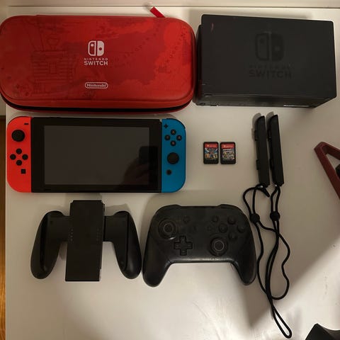 Jäänyt käyttämättä, joten erinomaisessa kunnossa. Mukana telakka televisiokäyttöä varten, Joy-Con-rannekkeet, Joy-Con-ohjainpidike sekä virtalähde. Konsolia voi käyttää sekä käsikonsolina että telakan kautta televisioon liitettynä. Joy-Con-ohjaimia voi käyttää kiinnitettynä konsoliin, yhdessä ohjainpidikkeessä tai erillisinä ohjaimina moninpeleissä.