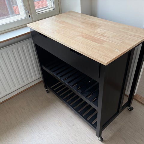 Keittiösaarekkeessa IKEA:n METOD runko, HÄGGEBY ovet ja MÖCKLERYD kansi. Sopii erityisen hyvin pienen yksiön keittiöön, sillä kaapissa on paljon säilytystilaa.