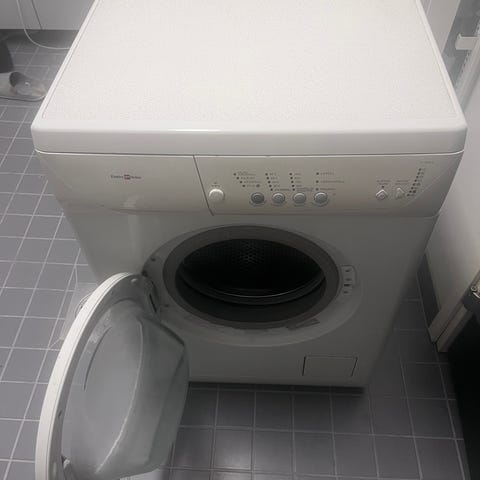 Lähes normaalisti toimiva pesukone, pesun jälkeen jää lukkoon ja täytyy laittaa muutamaksi minuutiksi off asentoon saadakseen oven taas auki. Muuten pesee, huuhtelee ja linkoaa hyvin ja kovaa.