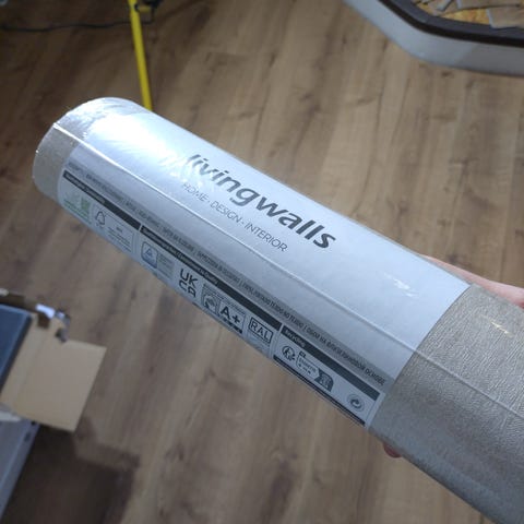 Kolme täyttä rullaa tapettia. Decorama EasyUp. Luonnonvaalea tapetti, hillitty kuvio. Tapettirullan pituus 11,2m, leveys 0,53. Yhteensä kolme täyttä rullaa, yksi avattu (kuvat). H.25e/yhteensä.