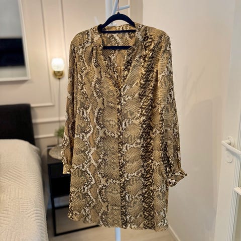 Kukkakuosillinen pitkä paitapusero/tunika.Musta pohjaväri.Kainalosta-kainaloon 56cm ja pituus 80cm.