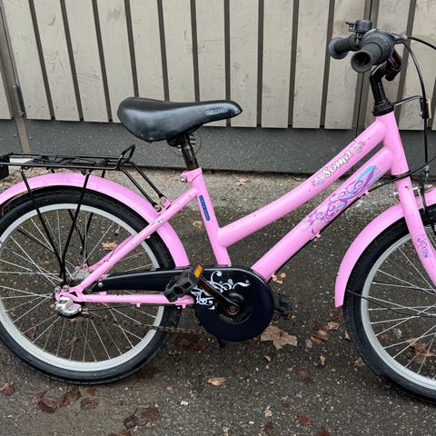 Insera Cindy lastenpyörä, 20" renkailla. Pyörässä on punainen runko ja valkoiset lokasuojat. Varusteluun kuuluu takatavarateline ja seisontatuki. Etujarrun vaijeri vaatii korjausta ja kahva hieman revennyt. Muuten hyvässä kunnossa ja hyvin vähän ajettu. Takajarru polkimilla.