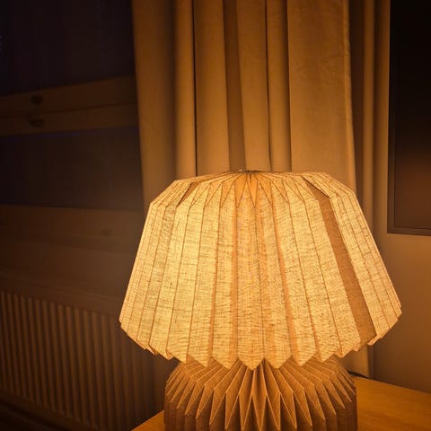 Pentikin paperipöytävalaisin, pehmeä, kaunis valo. koko on 34x34 cm. Siisti kunto.