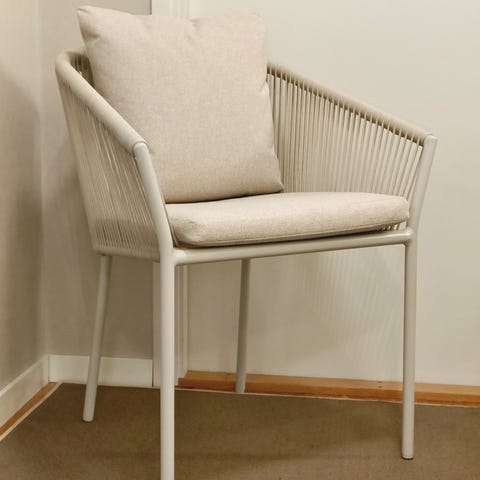Jyskistä ostettu tuoli, takana pienet käytön jäljelt muuten ehjä siisti ja tukeva.