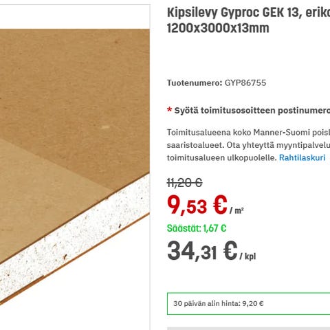 Gyproc GN 13 kipsilevy 1200x2520x13 mm