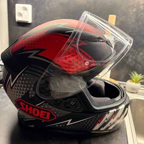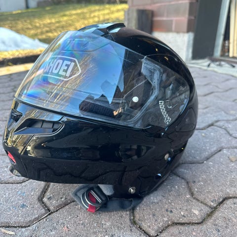 Shoei Ryd täyskypärä moottoripyöräkäyttöön, 5krt käytetty. Koko M57-58. Väri mattamusta. Shoei photochromic erikoisvisiiri (150€) + kypärän perus ostovisiiri extrana ilmaiseksi. Sisällä irrotettavat pehmusteet. Kypärä soveltuu moottoripyöräilyyn ja muuhun vastaavaan käyttöön, jossa vaaditaan suljettua kokokasvokypärää.