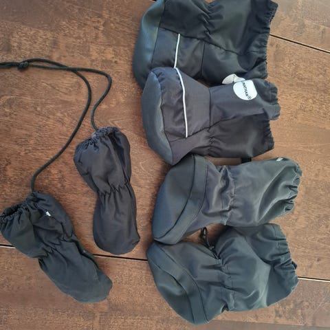 Siistikuntoiset vauvan ulkotumput ja töppöset. 0-3kk.