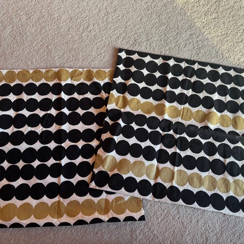 Myydään kaksi käyttämätöntä Marimekon Räsymatto käsipyyhettä, laput vielä kiinni. Tätä väriä ei taida enää saada.