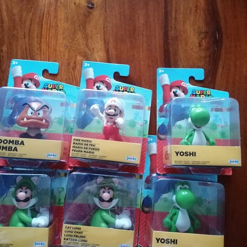 Myydään Super Mario hahmot. Luigi pyörii. Marion vasen käsi liimattu.