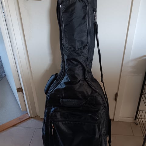 Gator akustisen kitaran syvä kova säilytys- ja kuljetuslaukku. Sisältä pehmustetussa laukussa lokero-osasto jonne saa kitaran soitossa tarvittavia esineitä. Kovamuovinen keissi on vahvistettu alumiinilla. Lukot pitävät laukun tanakasti kiinni. Gator on maineikas ammattilaisten suosima merkki. Nimikyltti on käyttämätön.