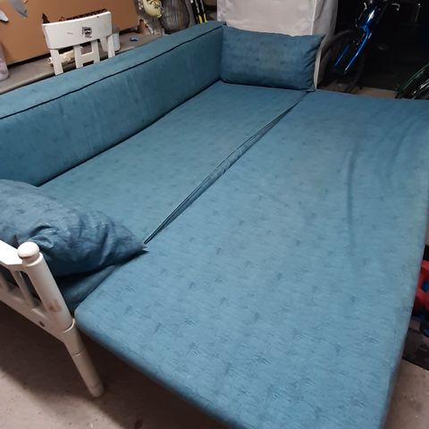 Myydään kaunis ja käytännöllinen levitettävä vuodesohva, mukaan myös erittäin hyvässä kunnossa oleva 90 cm leveä patja ja petauspatja. Tämä vuodesohva on Kruunukalusteesta hankittu ja todella hyväkuntoinen. Kokonaisuuteen kuuluu myös levitettävään osaan kapeampi patja.
