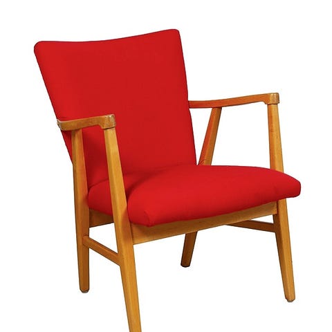 Punainen design nojatuoli 1950-lukuPuuosissa kulumaaVerhoilussa tahratKorkeus n. 82 cmIstuinkorkeus n. 44 cmLeveys n. 62 cmSyvyys n. 76 cmTämä tuote on Nihtisillan myymälätuote ja noudettavissa vain sijaintimyymälästä. Samalle tilaukselle ei voi lisätä muita tuotteita.Tuotteen saatavuus vahvistetaan keräilyvaiheessa. Mikäli tuote on ehditty myydä myymälästä, palautamme rahat täysimääräisenä tilillesi.
