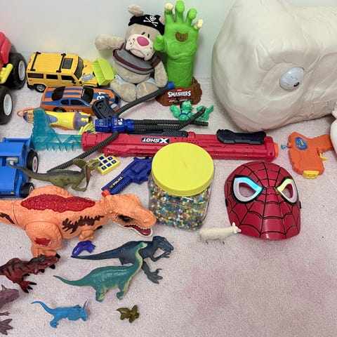 On Batmani, Hulkkia, spidermania, Anakin skywalker, traktoria, muutama auto, magneettirakennus-settiä, hai-naamaria, robotteja, minions keiloja, yms.