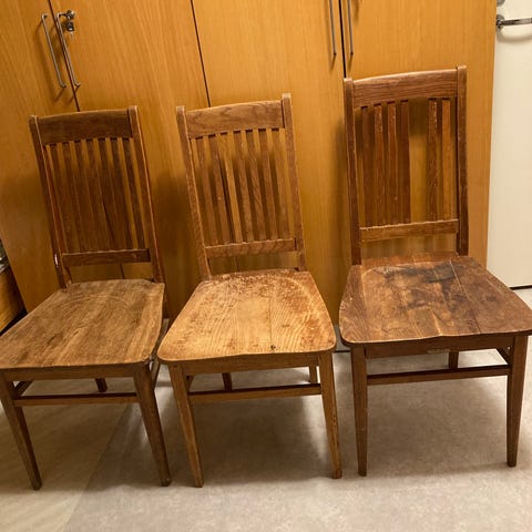 Tuoli on hyvässä kunnossa, mutta siinä on joitakin käytön jälkiä, kuten pieniä naarmuja ja kulumia.