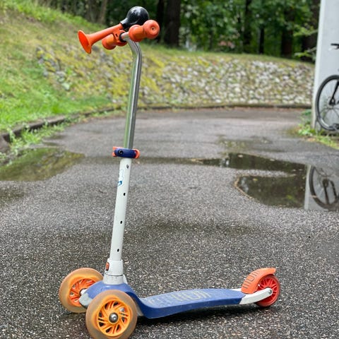 Potkulauta on käytännössä uusi, ehkä kahdesti kokeiltu ulkona. Lapsi innostui enemmän pyöräilystä ja tämä jäi käyttämättä.