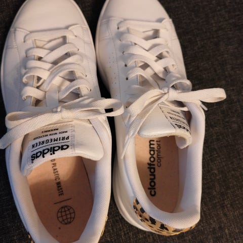 Adidas Court Tourino RF tennarit, koko 40. Nahka. Väri valkoinen, sivuilla rei’itetty pinta hengittävyyden parantamiseksi ja tummempi kantapääosa. Nauhakiinnitys ja kumipohja. Soveltuvat arkikäyttöön ja vapaa-aikaan.
