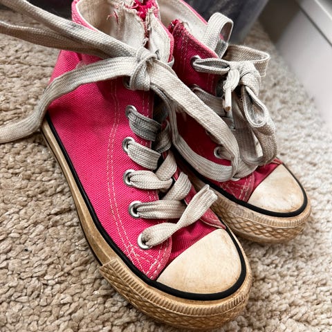 Liilan väriset lenkkitossut. Uutena ostettu, yhdellä lapsella ollut käytössä. Kulumaa kärjessä muuten hyväkuntoiset.
