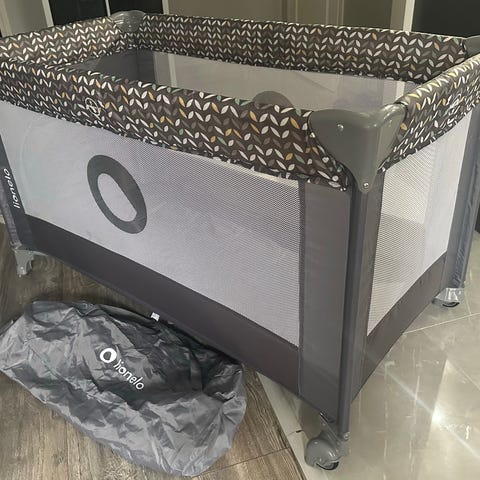 Ehjä matkasänky, pohjassa vähän kulumaa kohdassa mistä nostetaan kun sänkyä puretaan, näkyy kuvissa. Muutoin täysin ehjä. Tukeva kun keskellä myös jalka. Mukana tulee kovempi matka sekä tuollainen pehmeämpi ikäänkuin sijauspatja. Helppo kasaus. Patjat saa kaikki nippuun sängyn kanssa, helppo siis kuljettaa.