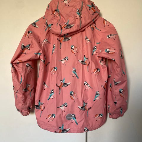 Lassie välikausitakki. Koko 128cm. Irroitettava huppu nepparikiiinnityksellä. Takissa taskut, joissa tarrakiinnitys. Kunto hyvä käytetty.
