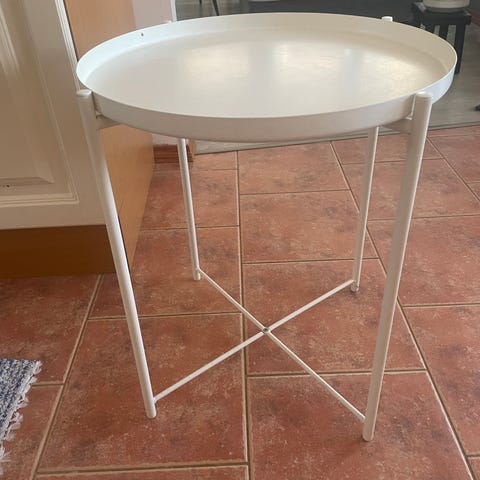 Myydään muuton alta Ikean apupöytä, jossa puinen levitettävä työtaso ja takajaloissa renkaat. Kannen leveys levitettynä 62 cm. Mukaan tulee toinen samanlainen puinen välihylly kiinnikkeineen kuin kuvassa asennettuna.