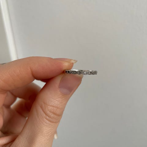 Sormuksen runko ei ole täysin pyöreä ja tässä on enemmän käytönjälkiä